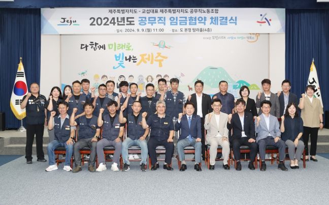 [경남도민뉴스=경남도민뉴스 기자] 제주특별자치도와 교섭대표 노동조합인 제주도 공무직노동조합이 2024년도 공무직 임금협약을 체결했다.
