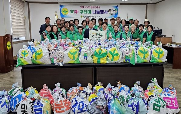 특히, 효꾸러미를 담은 주머니는 한번 쓰고 버려지는 폐현수막으로 인한 환경오염의 심각성을 인지하고 이를 재활용할 방법으로, 부녀회에서 폐현수막 재활용센터를 운영해 지난 4월부터 읍면부녀회장 및 지도자들의 재능기부로 다용도 주머니 300여 개를 제작해 이날 행사에 사용했다.