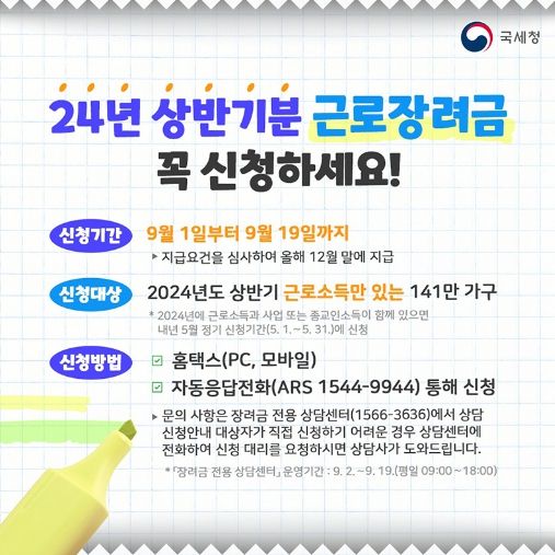[경남도민뉴스=경남도민뉴스 기자] 24년 상반기 분 근로장려금 꼭 신청하세요!