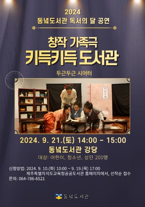 이번 공연은 어린이 및 청소년, 성인 200명을 대상으로 무료로 진행하며 참가 신청은 10일 오전 10시부터 19일 오후 5시까지, 제주특별자치도교육청 공공도서관 누리집 ‘프로그램 신청’에서 선착순 모집한다.