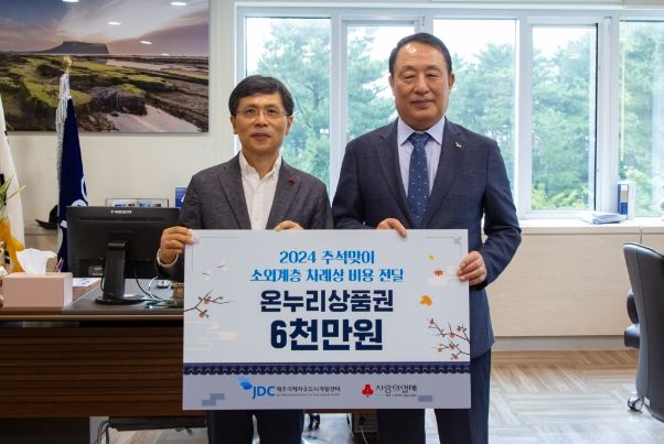 [경남도민뉴스=경남도민뉴스 기자] 제주국제자유도시개발센터에서는 추석을 맞이하여 소외계층 지원과 지역경제 활성화를 위해 6천만원의 온누리상품권을 제주특별자치도사회복지공동모금회를 통하여 기부한다고 10일 밝혔다.