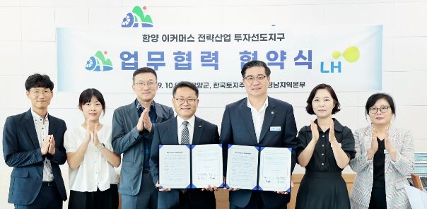 [경남도민뉴스=장광동 기자] 함양군과 한국토지주택공사(LH) 경남지역본부는 9월 10일 함양군수실에서 ‘함양 이커머스 전략산업 투자선도지구 업무협력 협약’을 체결하였다.