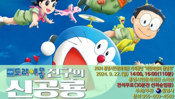 [경남도민뉴스=김부경 기자] 통영시는 오는 22일 오후 2시, 4시 통영시민문화회관 소극장에서 어린이영화 '도라에몽: 진구의신공룡'을 무료로 상영한다.