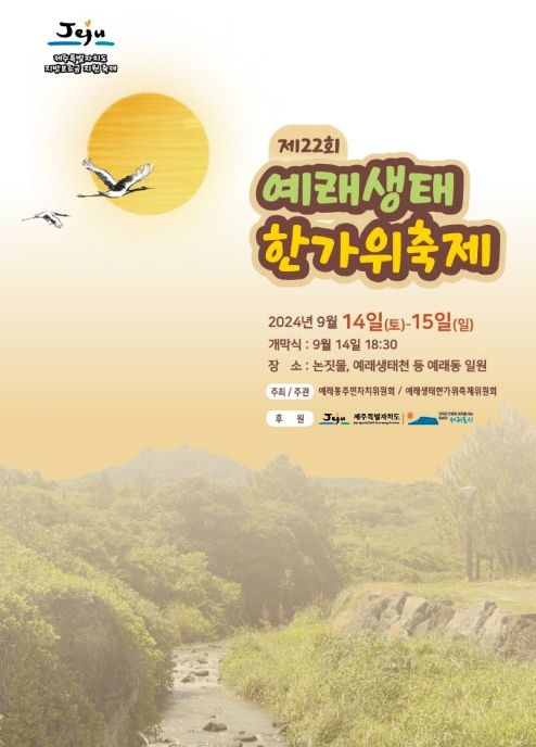 [경남도민뉴스=경남도민뉴스 기자] 제22회 예래생태 한가위축제가 오는 9월 14일부터 9월 15일까지 2일간 서귀포시 예래동 소재 논짓물 일원에서 개최된다.