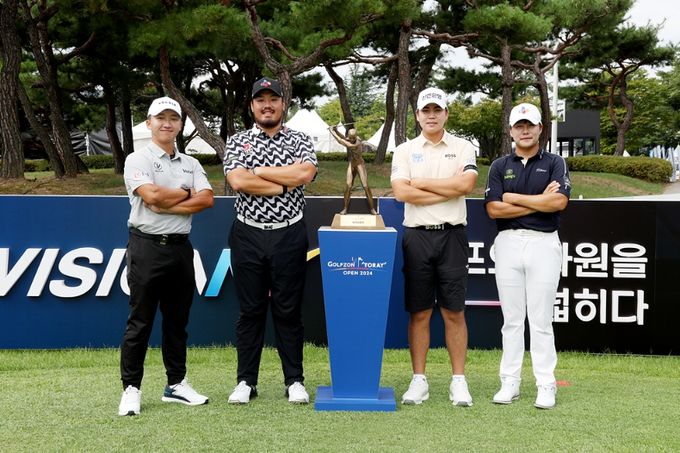 대회 코스인 경북 구미 소재 골프존카운티 선산(파72, 7,135야드) 1번홀 티잉 구역에서 진행된 이날 포토콜에는 ‘디펜딩 챔피언’ 정찬민(25.CJ), ‘제43회 GS칼텍스 매경오픈’ 우승자 김홍택(31.볼빅), 현재 제네시스 포인트 1위와 2위를 기록하고 있는 장유빈(22.신한금융그룹)과 김민규(23.CJ)가 참석해 우승 트로피와 함께 선전을 다짐했다.