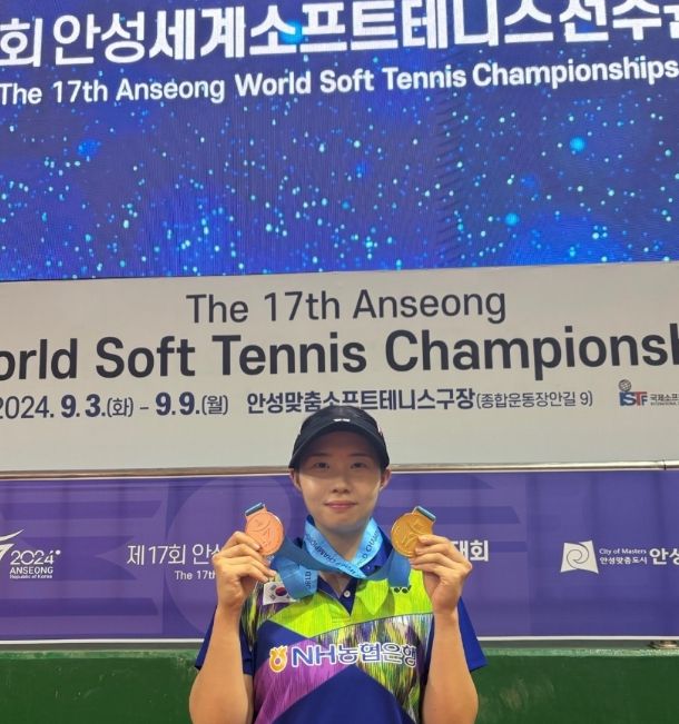 [경남도민뉴스=경남도민뉴스 기자] 2024년 소프트테니스 국가대표 옥천군 이수진 선수가 제17회 세계소프트테니스선수권대회에서 단체전(대한민국) 금메달, 여자 복식 동메달 입상하며 소프트테니스 최강자임을 재입증했다.
