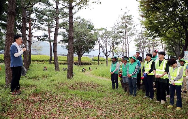 이날 하 군수와 군의원, 새마을지회, 공무원 등 50여 명은 공원 일대와 주요 도로변의 환경을 정비하며 구슬땀을 흘렸다.