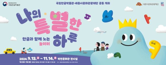 [경남도민뉴스=도문호 기자] 세종시문화관광재단(대표이사 박영국)과 국립한글박물관(관장 김일환)은 어린이 실감 체험전시인 '한글놀이터 – 나의 특별한 하루'를 오는 13일부터 박연문화관 전시실에서 공동 개최한다.