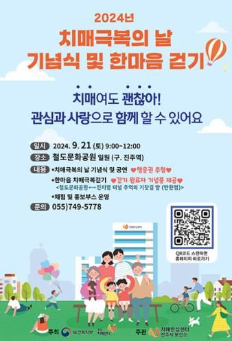 [경남도민뉴스=김종태 기자] 진주시는 치매극복의 날 기념하여‘치매여도 괜찮아! 관심과 사랑으로 함께 할 수 있어요’라는 주제로 한마음 걷기와 치매 극복 주간 캠페인을 펼친다고 밝혔다.