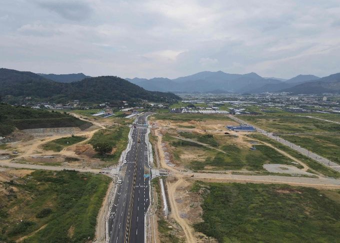 이 구간은 2021년 5월에 착공해 올해 10월 준공 예정이며, 2026년 개통 예정인 함양~울산 간 고속도로와 지방도 1080호선 도로와 연계해 나노국가산단 물동량의 원활한 처리와 물류비용 절감에 크게 이바지할 것으로 기대된다.