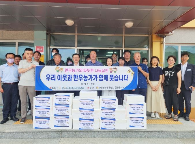 [경남도민뉴스=장광동 기자] (사)전국한우협회 함양군지부는 12일 함양군농업기술센터 체류형 농업창업지원센터에서 추석맞이 한우불고기 나눔 행사를 열었다.