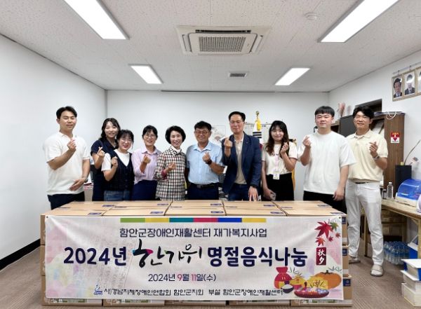 한편, 이날 ‘한가위 음식 나눔사업’에는 경남지체장애인연합회 함안군지회, 경남시각장애인복지연합회 함안지회, 경남농아인협회 함안군지회, 경남장애인부모연대 함안군지회, 한국장애인부모회 함안군지부 5개 단체가 참여해 뜻깊은 시간이 됐다.