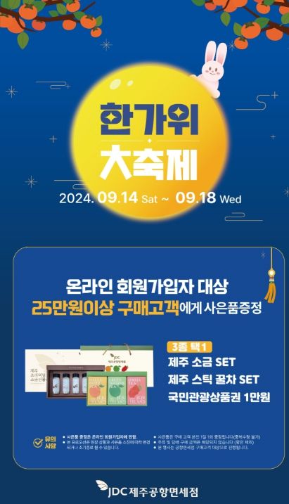 [경남도민뉴스=경남도민뉴스 기자] 제주국제자유도개발센터에서 운영하는 JDC지정면세점이 민족 대명절 추석을 맞아 고객 사은행사를 준비했다.