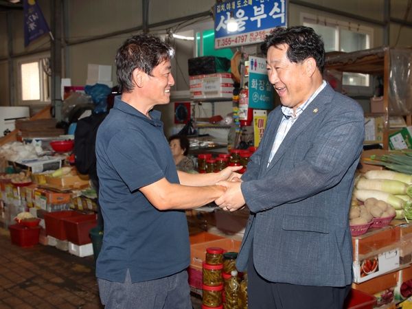 이어 밀양아리랑전통시장에 방문하여 시장을 찾은 시민들에게 추석 명절 인사와 함께 경기침체로 어려움을 겪는 상인들을 격려했다.
