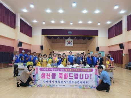 [경남도민뉴스=이상민 기자] 바르게살기운동 의령군협의회·여성회·화정면 위원회는 지난 9일 화정면 복합문화센터에서 ‘어르신 생신상 차려드리기’ 행사를 실시했다고 밝혔다.