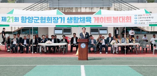 [경남도민뉴스=장광동 기자] 제21회 함양군협회장기 게이트볼대회가 9월 12일 오전 11시 함양스포츠파크 축구장에서 개최되었다.