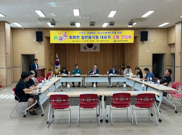 이번 간담회에는 회화면 일반음식점 대표자 10명과 재단 대표이사, 고성군의회 우정욱 부의장, 최두임 의회운영위원장, 김희태 의원, 회화면장이 참석했다.