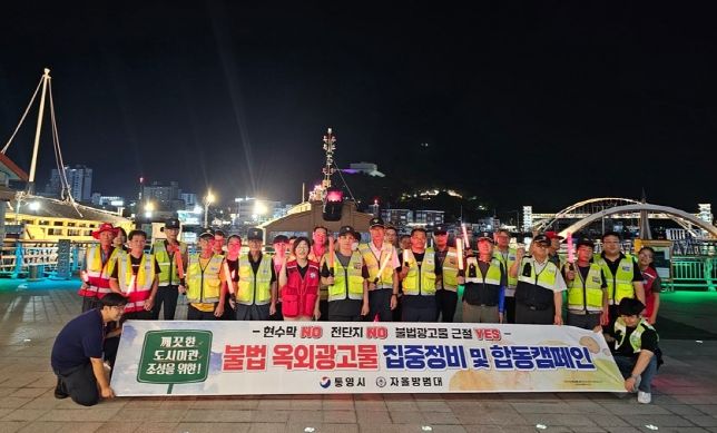 이번 합동단속은 지난 11일 (사)경상남도옥외광고협회와 통영시가 합동하여 개학을 맞이한 학교 주변을 14시부터 17시까지 전체 정비했으며, 등·하굣길 위험 광고물 등을 제거하여 안전하고 쾌적한 통학로 조성에 기여했다. 12일에는 20시부터 21시까지 중앙동 자율방범대, 정량동 자율방범대와 추석 연휴를 대비하여 시가지 주변 도로에 무분별하게 급증하고 있는 현수막, 벽보, 명함식 전단 등 불법유동광고물에 대해 집중 정비가 이루어졌다.