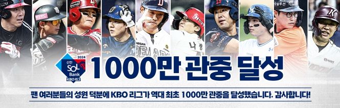 [경남도민뉴스=경남도민뉴스 기자] 2024 신한 SOL뱅크 KBO 리그는 9월 15일(일) 경기에서 누적 관중 1,000만명을 달성하며 KBO 리그의 역사를 새로 썼다.