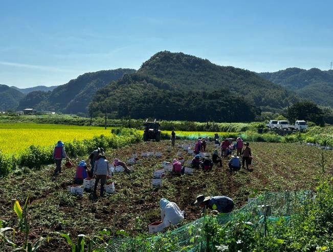 특히 수확에는 농촌지도자산청군연합회(회장 김상길)와 생활개선산청군연합회 회원 60여 명이 참여해 구슬땀을 흘리며 농업인학습단체 화합도 도모했다.