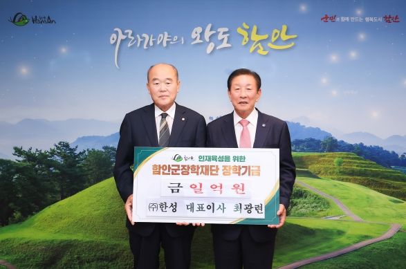 [경남도민뉴스=이상민 기자] 함안군 대산면에 소재한 방산 협력업체인 (주)한성 최광련 대표는 20일 함안군청을 방문해 지역인재육성을 위한 장학기금 1억 원을 군 장학재단에 기탁했다.
