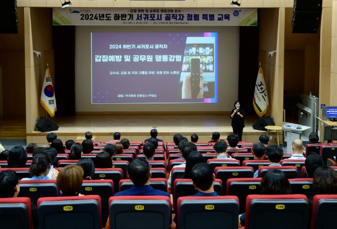 [경남도민뉴스=경남도민뉴스 기자] 서귀포시는 20일 시청 문화강좌실에서 공직자 200여명을 대상으로 갑질 예방 및 공무원 행동강령 준수를 위한 청렴 교육을 실시했다.