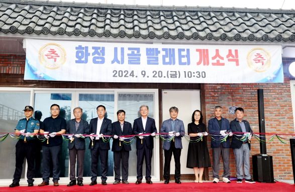 화정면은 20일 취약계층에 무료 세탁 서비스를 제공하는 '시골 빨래터' 문을 열었다. 이날 화정면 행정복지센터에서 열린 '시골 빨래터' 개소식에는 오태완 군수와 군의원, 주민자치회 위원, 주민 등 80여 명이 참석해 빨래방 개소를 축하했다.