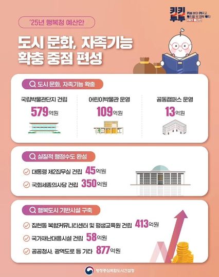 [경남도민뉴스=경남도민뉴스 기자] 도시 문화, 자족기능 확충에 중점을 둔 2025년 행복청 예산안을 편성했습니다.