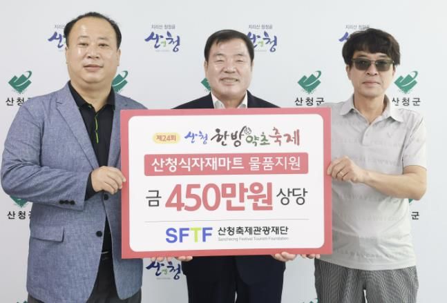 산청식자재마트 김용호 대표는 “산청 지역주민들의 관심과 사랑으로 성장해 온 만큼 산청한방약초축제의 성공적인 개최를 위해 작은 도움이 되고싶었다.”며 “앞으로도 지역사회와의 유대를 긴밀히 하여 사회적 책임을 다하고 싶다”고 밝혔다.