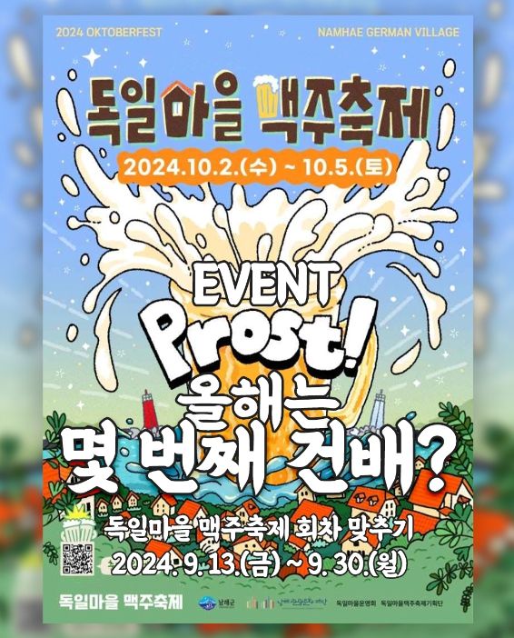 [경남도민뉴스=김부경 기자] 남해군은 9월 13일부터 30일까지 18일간 남해군 공식 SNS를 통해 ‘2024 독일마을 맥주축제’ SNS 이벤트를 진행한다고 밝혔다.