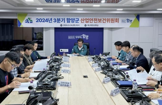 [경남도민뉴스=장광동 기자] 함양군은 9월 24일 오전 군청 재난종합상황실에서 사업장의 안전 및 보건에 관한 사항을 심의하기 위한 ‘2024년 3분기 산업안전보건위원회’ 회의를 개최했다.
