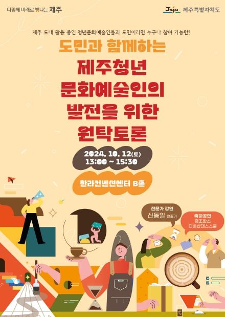 [경남도민뉴스=경남도민뉴스 기자] 제주특별자치도는 오는 10월 12일 한라컨벤션센터(B홀)에서 제주청년들이 직접 기획한 ‘도민과 함께하는 제주청년문화예술인의 발전을 위한 원탁토론’을 개최한다고 밝혔다.