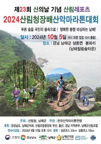 [경남도민뉴스=김부경 기자] ‘2024년 산림청장배 남해 전국 산림레포츠대회’가 오는 10월 3일과 10월 5일 남해힐링숲타운 일원에서 열린다.