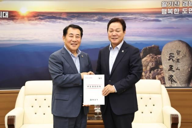 [경남도민뉴스=최미정 기자] 나동연 양산시장은 25일 경남도청을 방문해 박완수 도지사에게 10월 4일부터 6일까지 개최되는 2024년 양산삽량축전 개막식 초청장을 전달하는 자리에서 양산시 주요현안 사업에 대한 적극적인 관심과 지원을 건의했다.