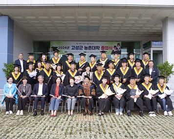 [경남도민뉴스=이형섭 기자] 고성군은 24일 오후 2시, 고성군 농업기술센터 친환경농업연구소에서 농촌대학 졸업생 25명을 비롯하여 내빈 및 관계자 등이 참석한 가운데 졸업식을 개최했다.