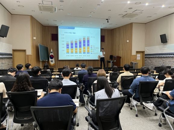 [경남도민뉴스=나희준 기자] 밀양시는 지난 24일 밀양시립박물관 대강당에서 신규공무원 대상으로 예산 실무 교육을 진행했다고 밝혔다. 이날 교육은 업무에 적용할 수 있는 실무능력향상에 중점을 두고 진행됐다.