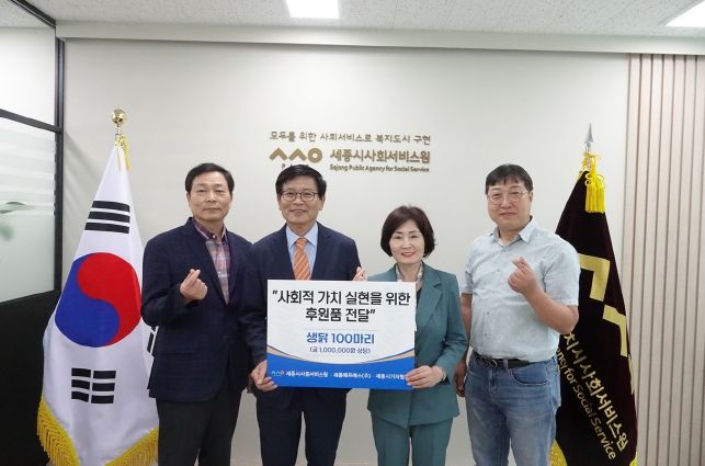 한편, 후원물품은 ▲세종시립요양원 ▲영명보육원 ▲사랑의마을 ▲세종빌 ▲다온꿈터 ▲행복꿈터 ▲세종시학대피해장애인쉼터 등 7개 생활시설에 배분했다.