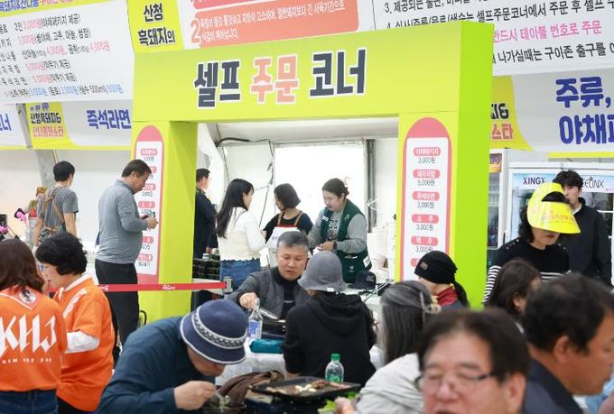 산청 음식관은 식사류 및 먹거리를 판매하며 흑돼지판매장에서 구입한 흑돼지를 직접 구워먹을 수 있는 셀프존이 마련됐다.