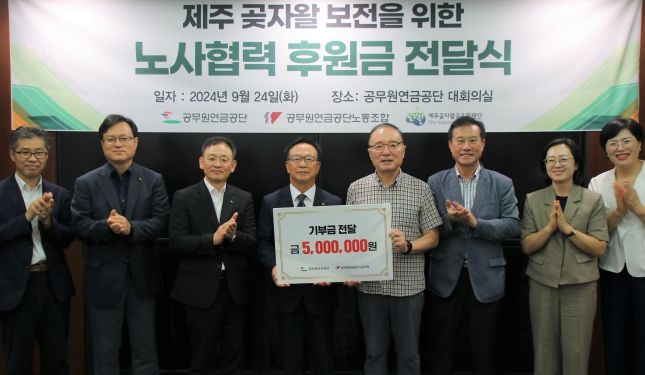 [경남도민뉴스=경남도민뉴스 기자] 공무원연금공단과 공단 노동조합은 지난 24일 노사협력기금을 활용하여 제주곶자왈공유화재단에 곶자왈 공유화 기금 500만원을 후원했다고 25일 밝혔다.