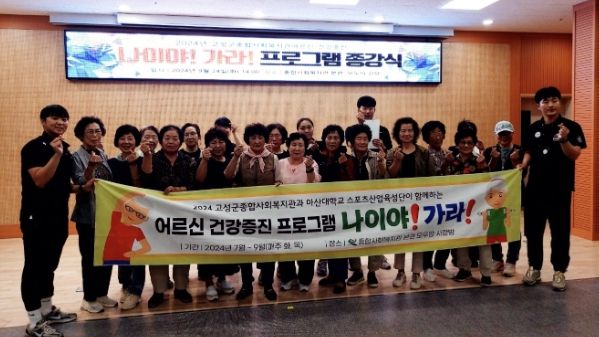 [경남도민뉴스=이형섭 기자] 마산대학교 스포스산업육성사업단과 국민체력100 창원마산회원체력인증센터의 지원으로 12주간 실시한 ‘나이야! 가라!’ 프로그램의 종강식이 9월 24일 종합사회복지관 분관에서 수강생 20여 명과 함께 진행했다.