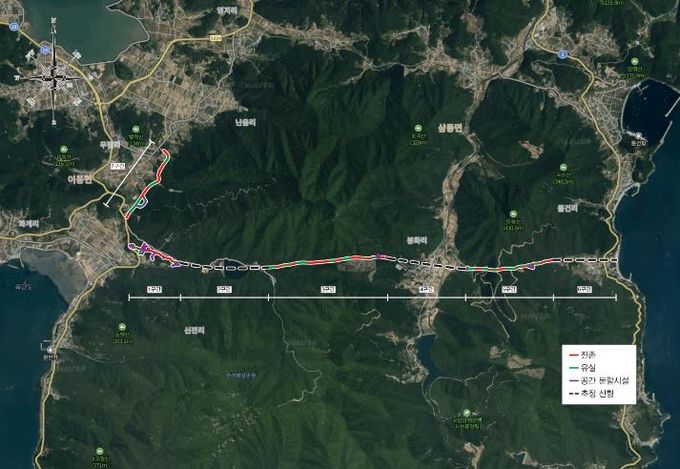조사는 남해장성이 잔존해 있는 이동면 ‘신전리-삼동면 봉화리-삼동면 대지포’ 구간에서 이루어졌다.