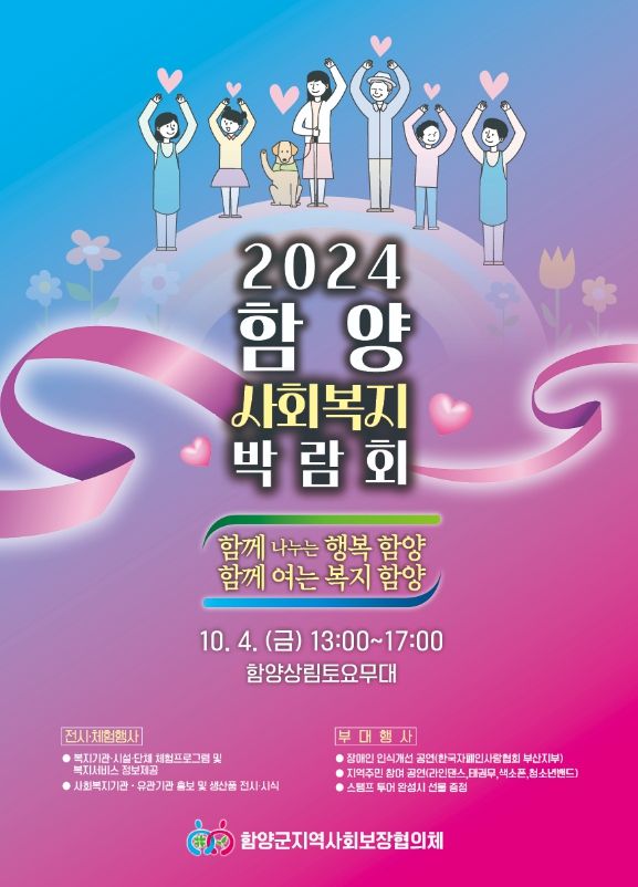 [경남도민뉴스=장광동 기자] 함양군은 오는 10월 4일 상림공원 토요무대에서 제2회 함양군 사회복지박람회를 개최한다고 밝혔다.