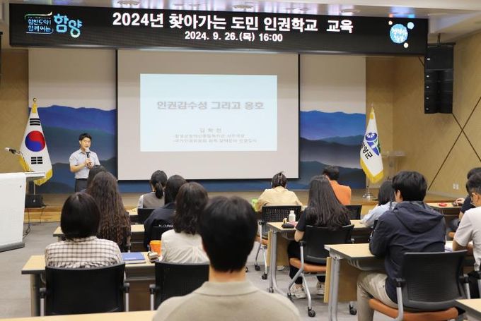 [경남도민뉴스=장광동 기자] 함양군은 26일 군청 대회의실에서 공무원 30명을 대상으로 ‘2024년 찾아가는 도민 인권학교’ 교육을 실시했다.