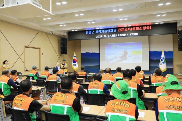 [경남도민뉴스=장광동 기자] 함양군은 27일 오후 군청 대회의실에서 11개 읍·면 방재단장, 단원 등 50여 명이 참석한 가운데 자율방재단의 재난 대응 전문성을 높이기 위한 전문교육(심폐소생술)을 진행했다.
