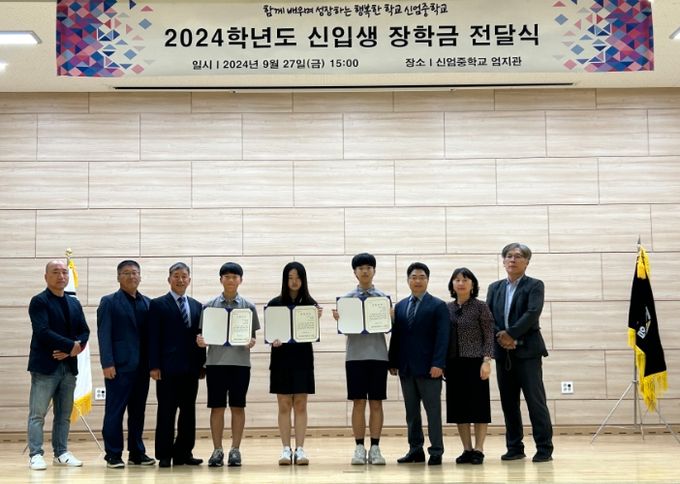 매년 신엄중학교 총동창회는 후배들이 학교를 사랑하고 각자 꿈과 끼를 키울 수 있도록, 동문의 마음을 모아 장학 기금을 마련하여 기탁하고 있으며 올해도 강성관 총동창회장을 비롯한 총동창회 관계자 5명이 신엄중학교를 방문하여 직접 장학금과 장학 증서를 수여하고 신입생들의 학교생활과 학업을 격려하며 용기를 주었다.