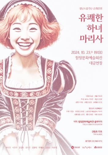 [경남도민뉴스=장광동 기자] 함양군은 오는 10월 23일 오후 7시 함양문화예술회관 대공연장에서 경남도립극단의 ‘유쾌한 하녀 마리사’ 순회공연을 개최한다고 밝혔다.