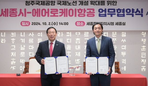 [경남도민뉴스=도문호 기자] 세종시와 에어로케이항공㈜이 시민들의 청주공항 이용 편의를 높이고 중부권 거점 공항인 청주공항의 발전을 위해 협력한다.