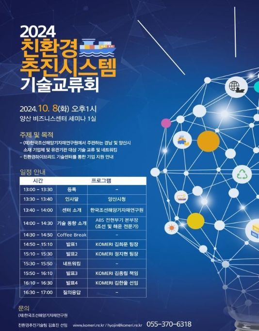 [경남도민뉴스=최미정 기자] (재)한국조선해양기자재연구원이 주최하는 ‘2024 친환경 선박 하이브리드 추진시스템 기술교류회’가 오는 8일 오후 1시 양산비즈니스센터에서 개최된다.