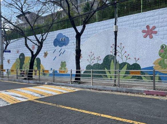 이번에 새롭게 단장한 오봉초등학교 옹벽부는 기존 벽화의 노후와 퇴색으로 도시미관을 해치고 초등학생들의 안전한 통학 환경을 저해했던 곳이다.