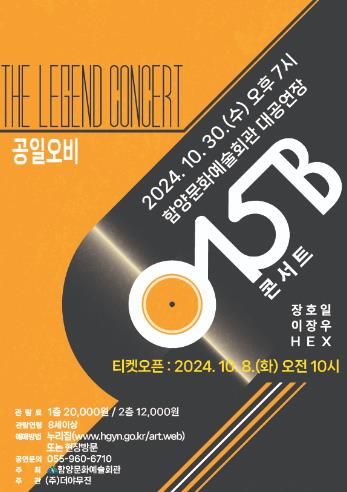 [경남도민뉴스=장광동 기자] 함양문화예술회관에서는 공일오비(015B) 가을콘서트를 오는 10월 30일 오후 7시 함양문화예술회관 대공연장에서 열린다.